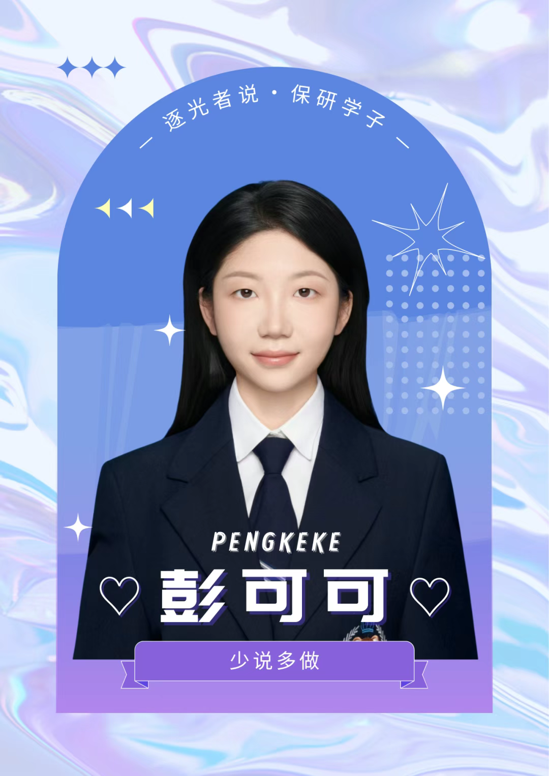 在采访尾声,彭可可稍微思考后笑着再次提到了那句她曾收到的鼓励——“少说多做”。这四个字曾给予过她力量,如今,她希望将这份历经打磨仍未褪色的信念,传递给每一个正在路上的师弟师妹们。