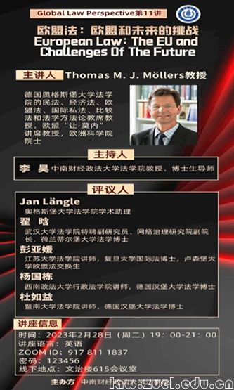 德国奥格斯堡大学法学院的民法、经济法、欧盟法、国际私法、比较法和法学方法论教席教授,欧盟“让·莫内”讲席教授,欧洲科学院院士