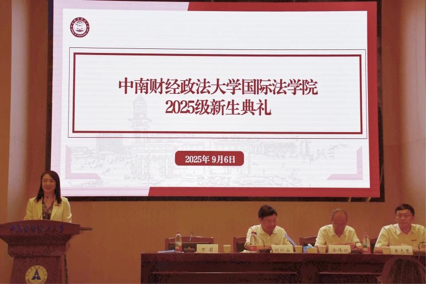 法启新程连四海,律通寰宇为九州。9月6日,中南财经政法大学国际法学院2025级新生开学典礼在南湖校区法学科研大楼一楼报告厅隆重举行。中南财经政法大学党委常委、副校长刘仁山,1995级国际经济法校友、中国国际私法研究会副会长、中国人民大学涉外法治研究院院长杜焕芳,国际法学院院长、党委副书记徐伟功,国际法学院党委书记万莉,副院长黄志慧,2025级本硕博全体新生以及部分教师代表、家长代表共同参加了本次典礼。典礼由万莉主持。