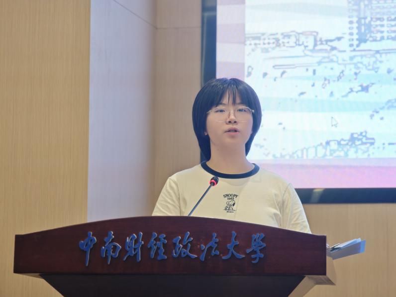 国际法2023级硕士谢沂廷同学作为在校学生代表发言。她通过分享自己的亲身经历,鼓励在座同学培养发现问题的耐心、独立思考的勇气,勉励大家培养抗压能力,学会及时调节情绪,希望师弟师妹们能够迎难而上、阔步向前。