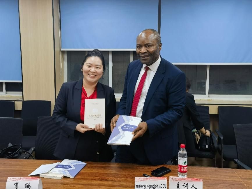 肖鹏副教授为霍杜教授赠送图书,表达自己作为曼彻斯特大学毕业生对母校的感激。