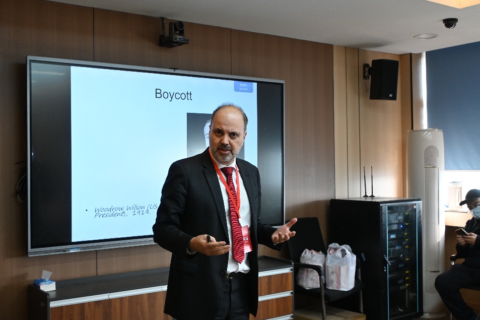 Aziz Tuffi Saliba教授以“单边强制措施与国际法律秩序”为主题,剖析了联合国制裁体系的演变,揭示了其在维护国际和平与对人道及法律造成的双重影响。他阐述了对一国进行全面制裁的弊端,并分析了当前国际社会多边与单边制裁并存的复杂格局。最后,他结合国际法强调,制裁必须遵守国际法,恪守相称性原则并尊重基本人权,确保制裁的合法性与人道关怀。