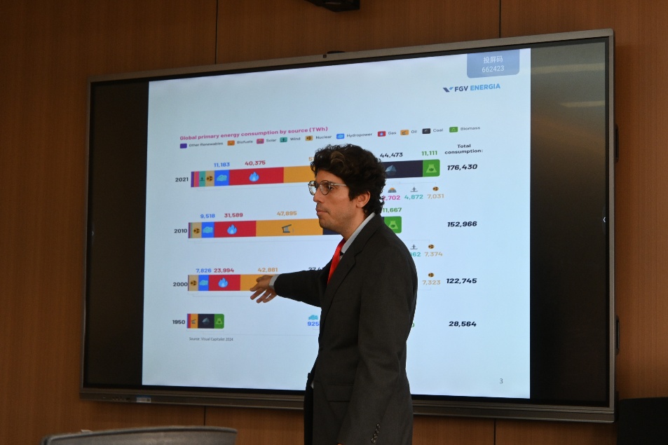 Eduardo Pereira教授以“能源三重困境:平衡能源转型、能源安全与能源公平”为主题开展研讨与分享。他指出,当前国际能源结构绿色转型与碳减排面临严峻挑战,实现能源领域“可持续性、可负担性、安全性”三重核心目标需慎重权衡利弊。他强调,当前全球能源问题解决需长短期计划结合、创新技术支持、发达国家的配合与照顾发展中国家的需求等,为解决全球能源与气候危机提供了有益启示。