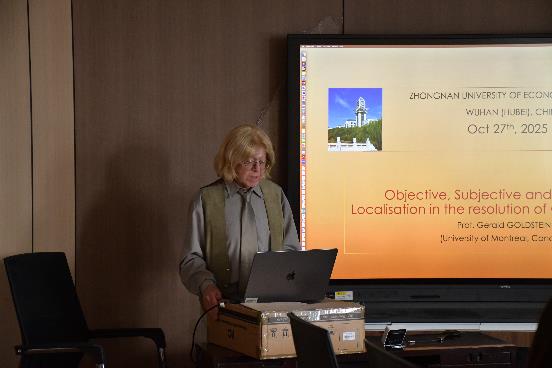 最后,加拿大蒙特利尔大学法学院Gerald GOLDSTEIN教授以“Comparative Conflict of Laws :Current Issues Objective, Subjective and Imperative Localisation in the Conflict of Laws(比较冲突法:当前问题—冲突法中的客观、主观与强制性本土化)”为题,系统阐述了当代国际私法在解决法律冲突时采用的三种互补性方法。教授首先阐述了客观本土化的源流与核心,其追溯到萨维尼的理论,指出该方法致力于为每一种法律关系寻找“自然的归属”。这种方法着眼于法律关系的本质而非立法者的意志,旨在实现不同国家判决的协调与统一。随后,讲座转向强制性本土化。教授指出当国家的强制性规则或根本性的公共政策必须得到适用时,客观选择的法律可能被排除。公共政策从负面排除了外国法的适用,并从正面代之以法院地法的解决方案,以维护法律秩序。最后,教授重点分析了当代蓬勃发展的主观本土化。这种方法的核心理念是将当事人置于中心位置,赋予他们在不同程度上自主选择合同准据法的权利。教授最后强调,客观、强制性与主观这三种本土化方法并非相互排斥,而是多元互补、共同演进的关系。它们共同构成了一个连贯、稳固且富有弹性的底层结构,能够以理性应对现代冲突法中出现的各类复杂问题。