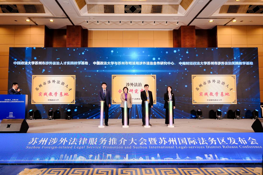 2025年11月7日,苏州市司法局在上海举办苏州涉外法律服务推介大会暨苏州国际法务区发布会,国际法学院代表受邀参会,现场挂牌“中南财经政法大学苏州市涉外法治人才实践教学基地”,与中国政法大学同步成为首批合作高校,此举既是学院响应国家涉外法治建设战略部署、落实党的二十届三中全会“完善以实践为导向的法学院校教育培养机制”的具体行动,也为构建理论与实务深度融合的协同育人机制、服务区域高水平对外开放搭建关键平台。
