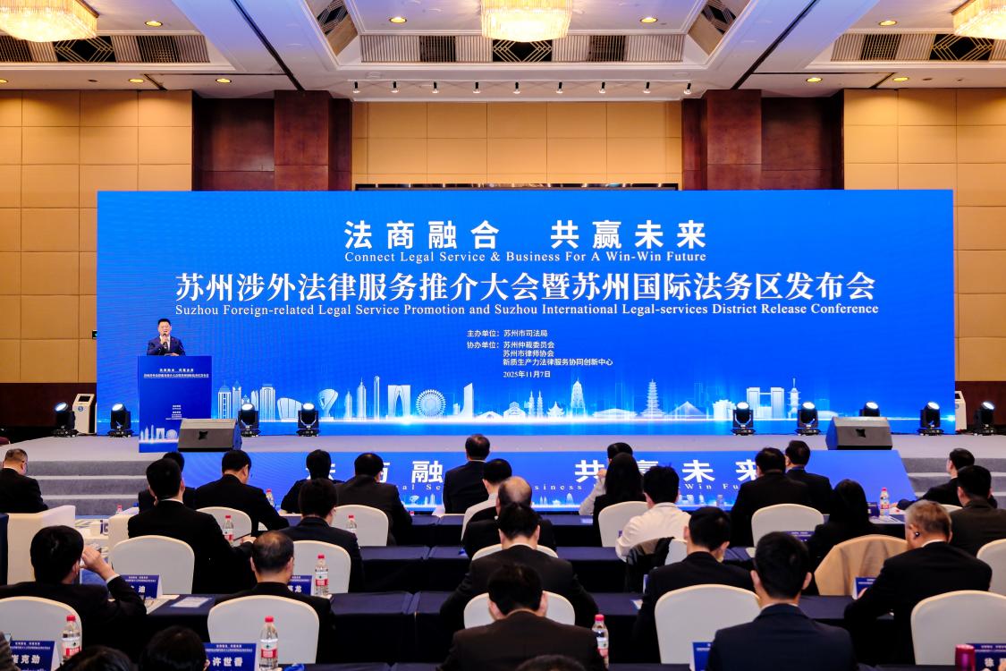此次大会紧扣党的二十届四中全会“加快涉外法治体系和能力建设”决策部署,聚焦苏州国际法务区建设启动。作为江苏省政府指导、苏州市政府重点推动的涉外法律服务高质量发展先导区,苏州国际法务区已纳入《关于推动苏州国际法务区建设 助力打造双向开放的国际门户城市的实施方案》规划,明确建立由市司法局、苏州工业园区管委会、高校及科研机构共同参与的建设机制,以阳澄银座为核心承载区,聚焦涉外商事争议解决、涉外法律服务机构培育、涉外投资贸易服务、涉外法治交流研究四大定位,打造“国际化、专业化、数字化”的涉外法治服务高地。苏州市委副书记、政法委书记黄爱军,中国政法大学副校长刘艳红,江苏省司法厅党委委员、副厅长范沁芳等出席会议并致辞,黄爱军在欢迎辞中强调苏州将法治作为现代化强市核心竞争力,期待与高校携手培育优质法律人才,为开放型经济发展注入动能。