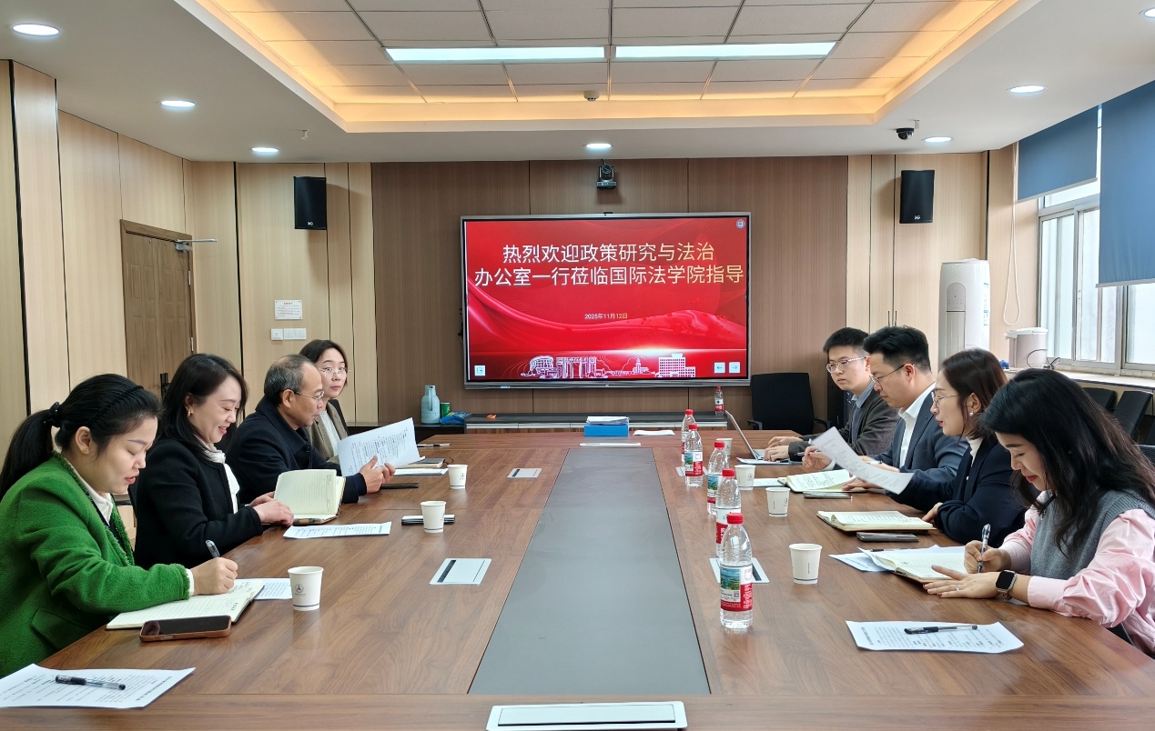 万莉代表学院对法治办一行的精准指导表示热烈欢迎,她强调,国际法学院作为新建学院,在制度建设与规范管理方面亟需学校职能部门的专业支持,此次专题指导恰逢其时。徐伟功院长亦对法治办给予学院的关心与支持表达衷心感谢,并希望以此次交流为契机,进一步夯实学院合同管理基础。