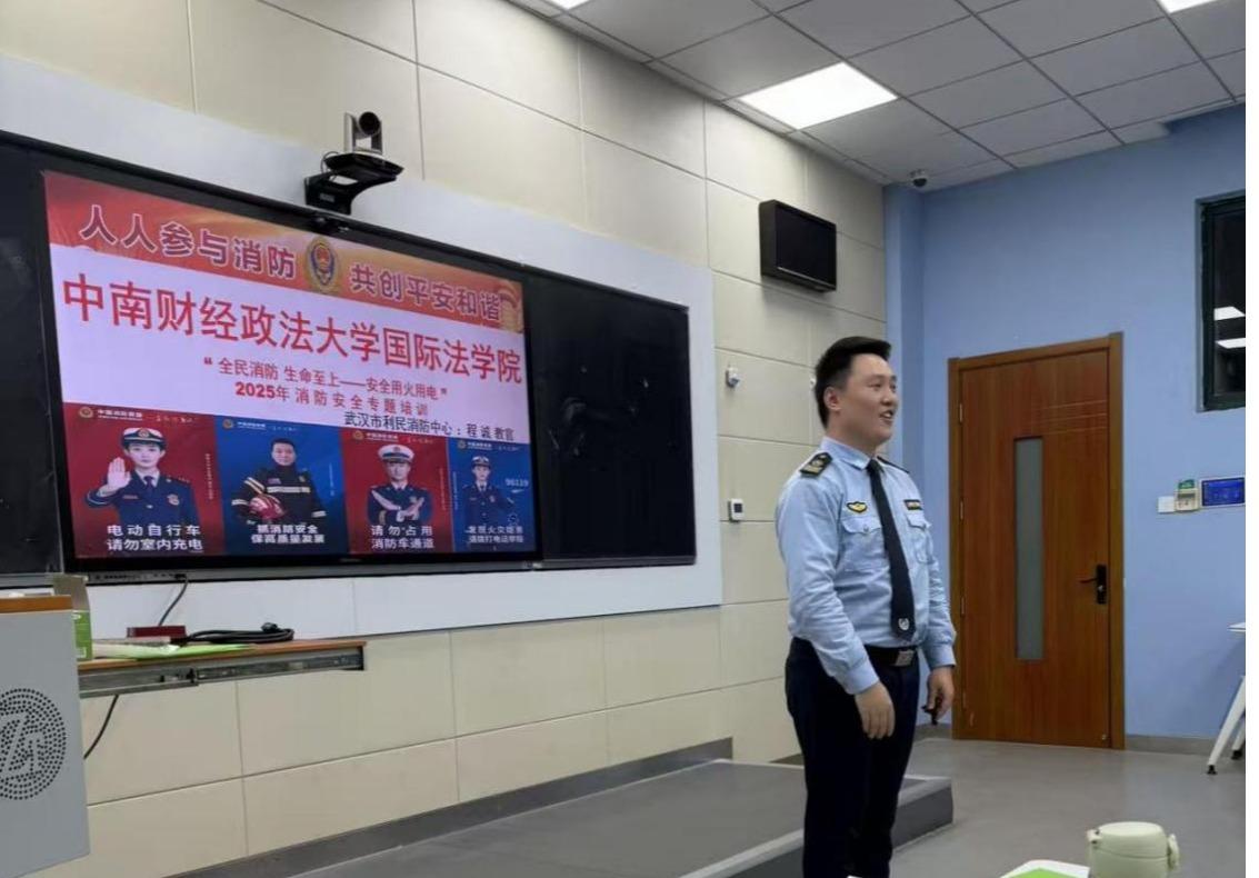 为深入贯彻落实安全生产相关部署要求,充分发挥党建引领安全工作的核心作用,切实筑牢校园安全屏障、守护师生生命安全,12月12日,国际法学院组织开展消防安全培训活动,特邀武汉市利民消防宣传中心程诚教官现场授课,学院师生共同学习消防安全知识与应急处置技能。