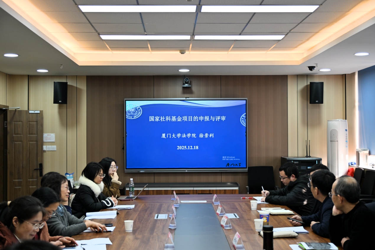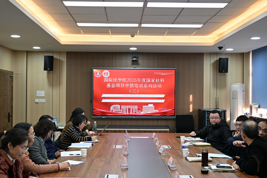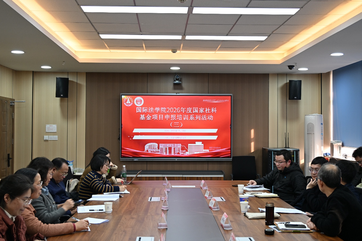 2025年12月18日,中南财经政法大学国际法学院国家社科基金项目申报指导系列培训活动(三)在文治楼815会议室顺利举行。本次活动旨在进一步提升学院科研项目申报质量,加强学科建设与教师科研能力,特邀厦门大学法学院教授、博士生导师徐崇利担任主讲嘉宾。讲座由国际法学院院长徐伟功教授主持,副院长黄志慧教授及杨洪教授、钟丽副教授、王小琼副教授、余素梅副教授、丁汉韬博士、孙林林博士、樊婧博士、梁卓博士、段鑫睿博士、梁佳欣博士、向伦博士、汪小静博士等教师代表与研究生共同参与。
