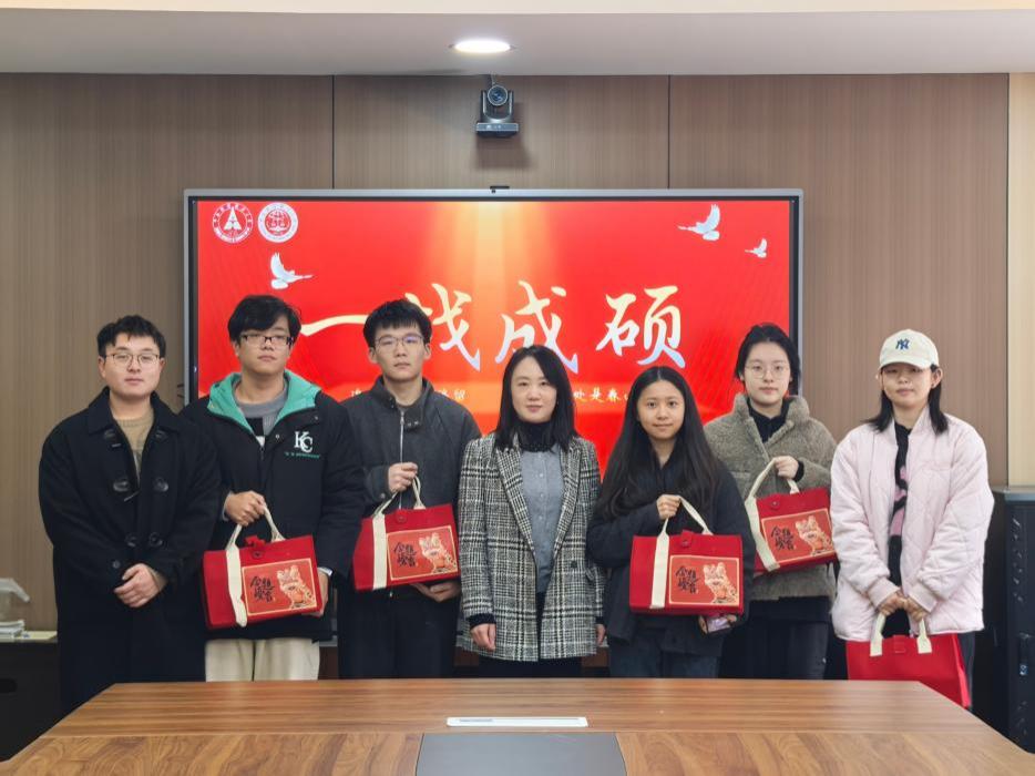 霜风送寒,研途情深;笔耕不辍,梦想可期。随着2026年全国硕士研究生招生考试进入最后冲刺阶段,为切实传递学院关怀、缓解学子备考压力、提振应考信心,国际法学院精心组织“旗开得胜・研途相伴”主题慰问活动,学院领导班子成员与辅导员老师亲临现场,为逐梦学子送上满载期许的“旗开得胜套装礼盒”,以暖心举措为青春追梦路保驾护航。