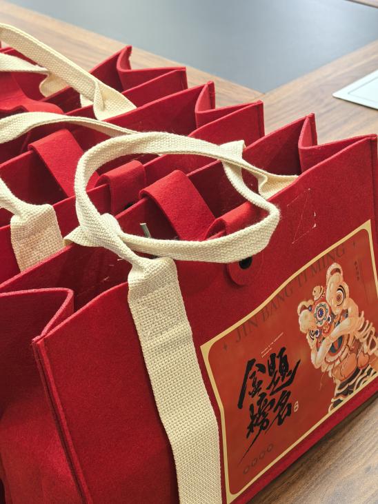 活动现场,学院为学子们准备了定制的“旗开得胜套装礼盒”,礼盒兼具实用性与仪式感,每一件物品都暗藏巧思、饱含期许:新鲜饱满的橙子寓意“一举橙功”,为学子送上甜蜜祝福;状元满屋考试7件套、定制笔记本与金榜题名贴纸,精准匹配备考与应试需求,助力高效复习;印着“未来可期”的马克杯与便携毛毡礼袋,兼顾日常使用与收纳便利,细节处尽显关怀;励志摆件则时刻提醒学子坚守初心、逐梦不辍,强化备考信念。一份份礼盒,承载的不仅是物资支持,更是学院对考研学子的深切关怀与美好祝愿。