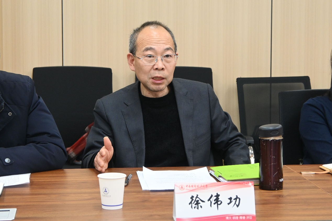 座谈会上,徐伟功院长首先系统梳理了学院在师资结构、人才培养等方面的基本情况,重点阐述了在国际法前沿领域的核心研究方向与现有科研项目进展。他深入剖析了学院的学科特色与平台优势,并就下一阶段的发展目标与规划路径进行了说明。徐院长强调,面对科研工作的新形势与新挑战,学院将着力对内完善激励机制、构建长效协同平台,对外积极承办高层次国际学术会议,以内外双向发力推动科研创新与学科影响力持续提升。