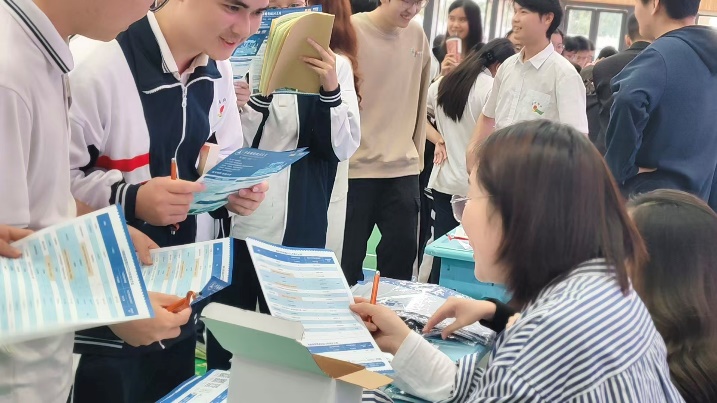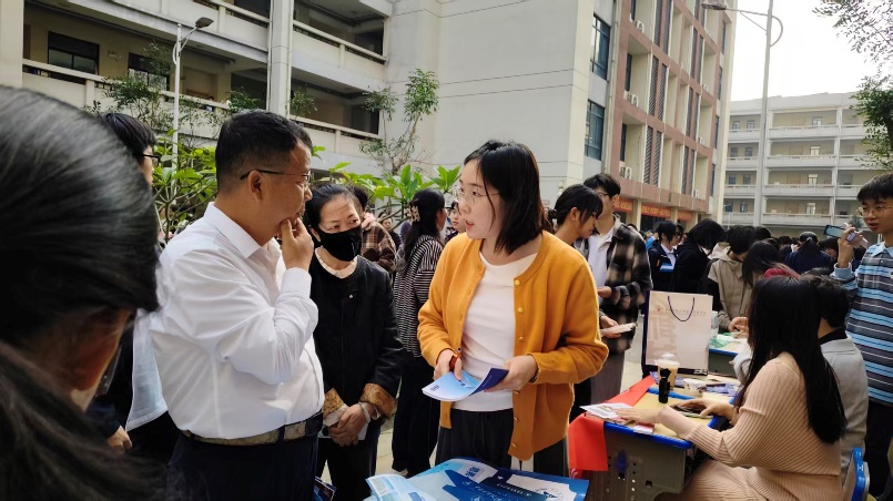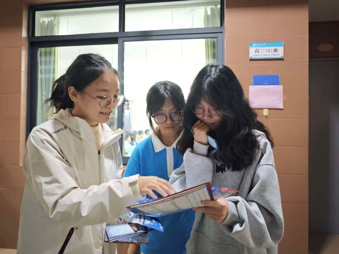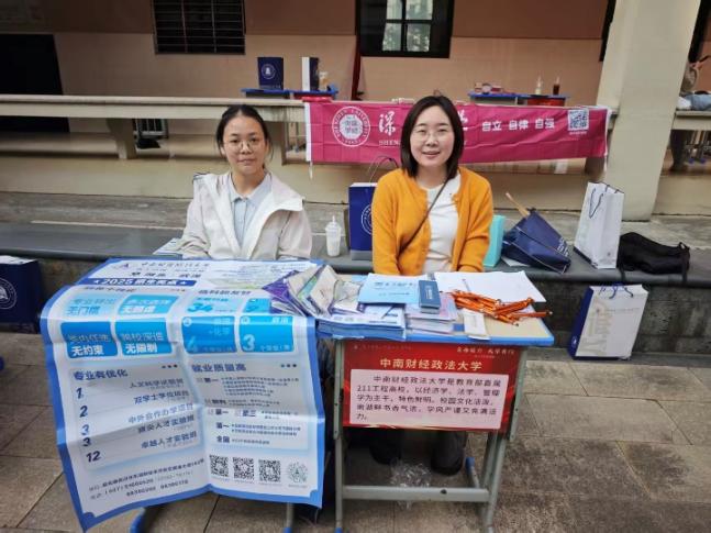 师生二人先后抵达三所优质中学,在各学校组织的招生咨询会上,精准对接高三学子及家长需求,开展全方位、多层次的宣讲交流。董星仙老师立足中南财经政法大学“双一流”建设成效与深厚红色育人底蕴,系统解读学校办学特色与育人理念,结合海南自由贸易港建设的时代机遇,深入剖析当前国家对高素质涉外法治人才的迫切需求,重点介绍了国际法学院的招生政策、学科优势、人才培养模式——学院聚焦“通晓国际规则、参与国际事务、服务国家战略”的复合型法治人才培养目标,开设涉外法律核心课程、搭建跨境实务实践平台,其人才培养方向与海南自贸港涉外法治建设、国际贸易合作等发展需求高度契合、同频共振,同时鼓励广大海南学子将个人成长与国家发展、地方建设紧密结合,报考中南大国际法学院。随行的2024级本科生郭傲霜则以朋辈视角,结合自身学习生活经历,耐心解答高三学子关于课程设置、学习难度、社团活动、校园生活配套等热点问题,用真实的校园故事、鲜活的成长体验,为学子们展现了立体生动的中南大风貌,有效拉近了与考生的距离,激发了大家的报考热情。