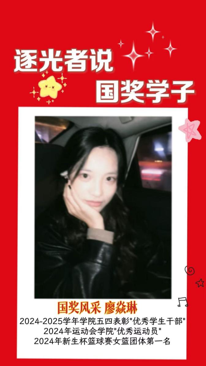 谈及国奖之路,廖焱琳用“尝试”一词精准概括。在她看来,大学的包容与多元,恰是赋予每个人探索自我的最佳土壤——这里的尝试从非漫无目的的跟风,而是循着自身需求、喜好与特质的主动选择。这份信念,让她在初入校园的新鲜感中保持清醒,在未知的旅程中勇敢迈步,最终让无数次看似平凡的尝试,汇聚成照亮前路的荣光,也让国奖成为努力与机遇不期而遇的美好馈赠。