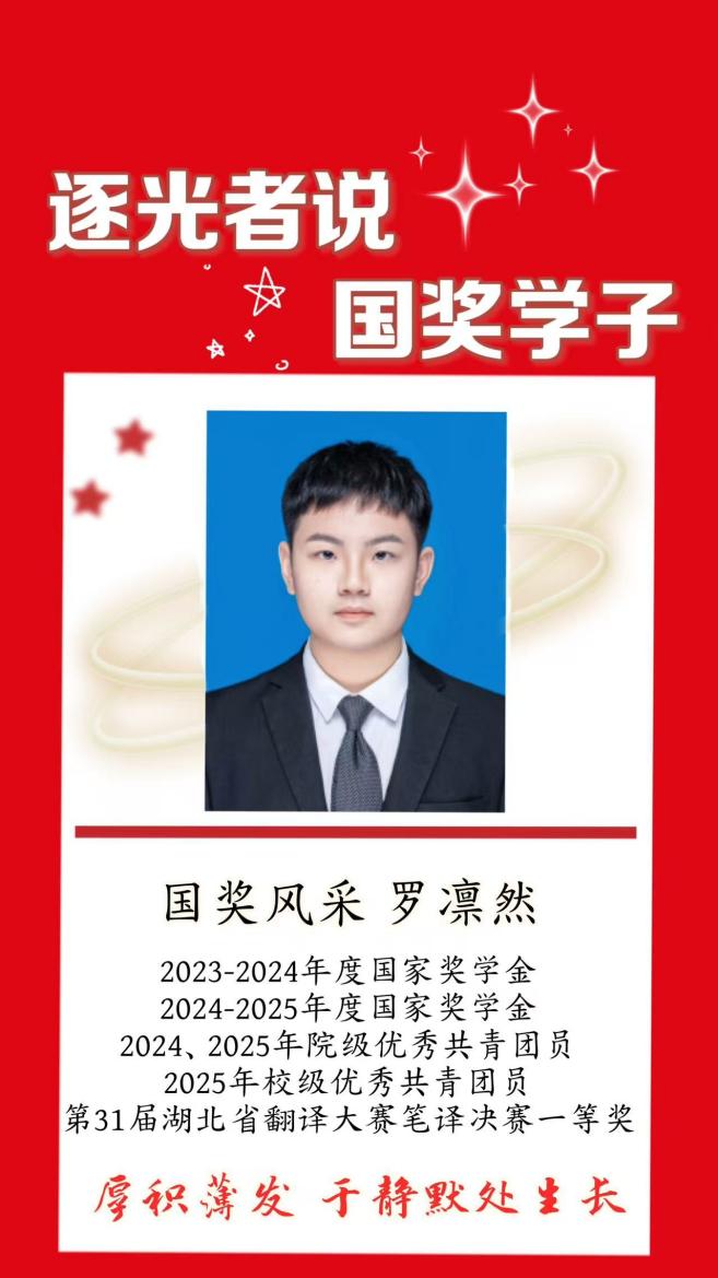 高光从非凭空降临,荣光皆由点滴沉淀。国际法2301班的罗凛然,以苏轼笔下“厚积”二字定义国奖之路,秉持“博观而约取,厚积而薄发”的信念,在日常中默默积蓄力量,于规划中稳步夯实根基,让国奖成为长期沉淀后的自然绽放,书写了沉稳且坚定的成长答卷。
