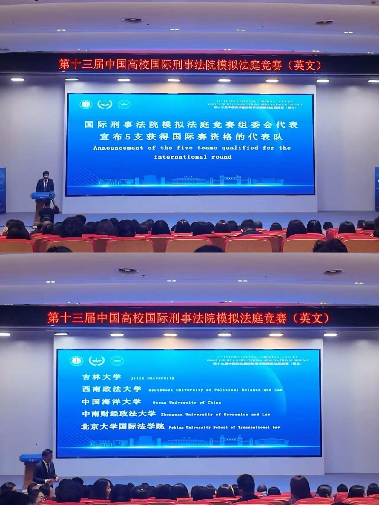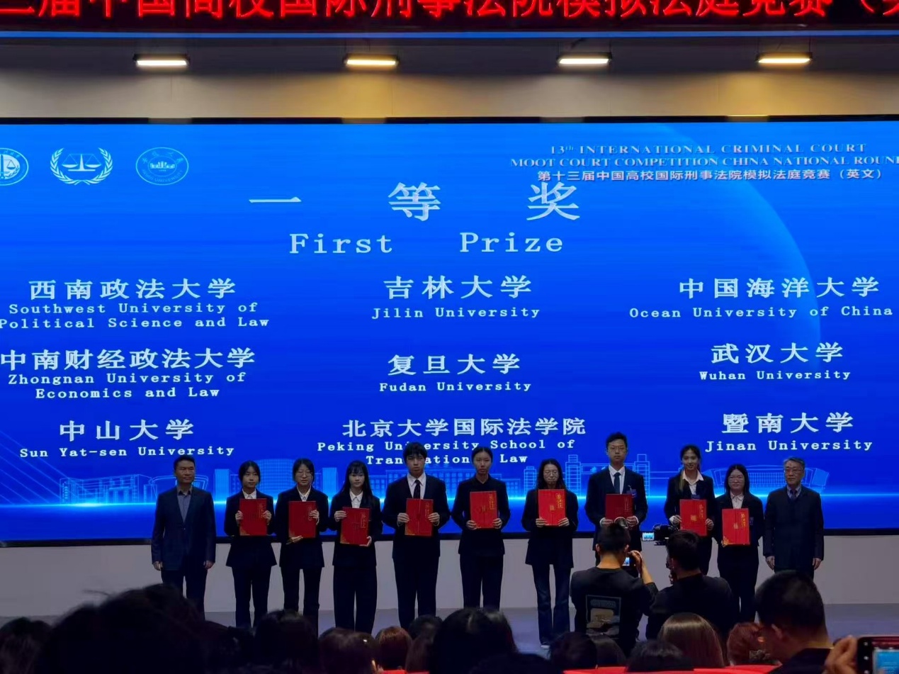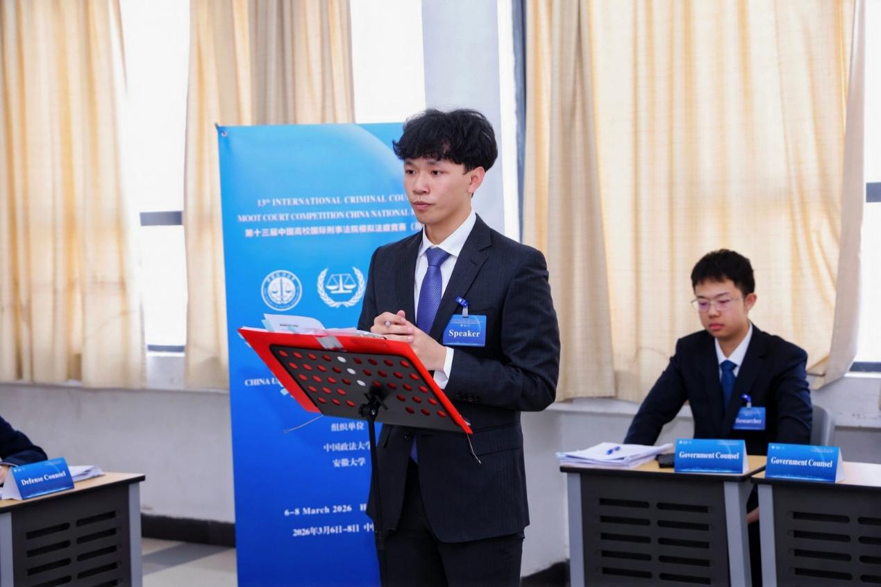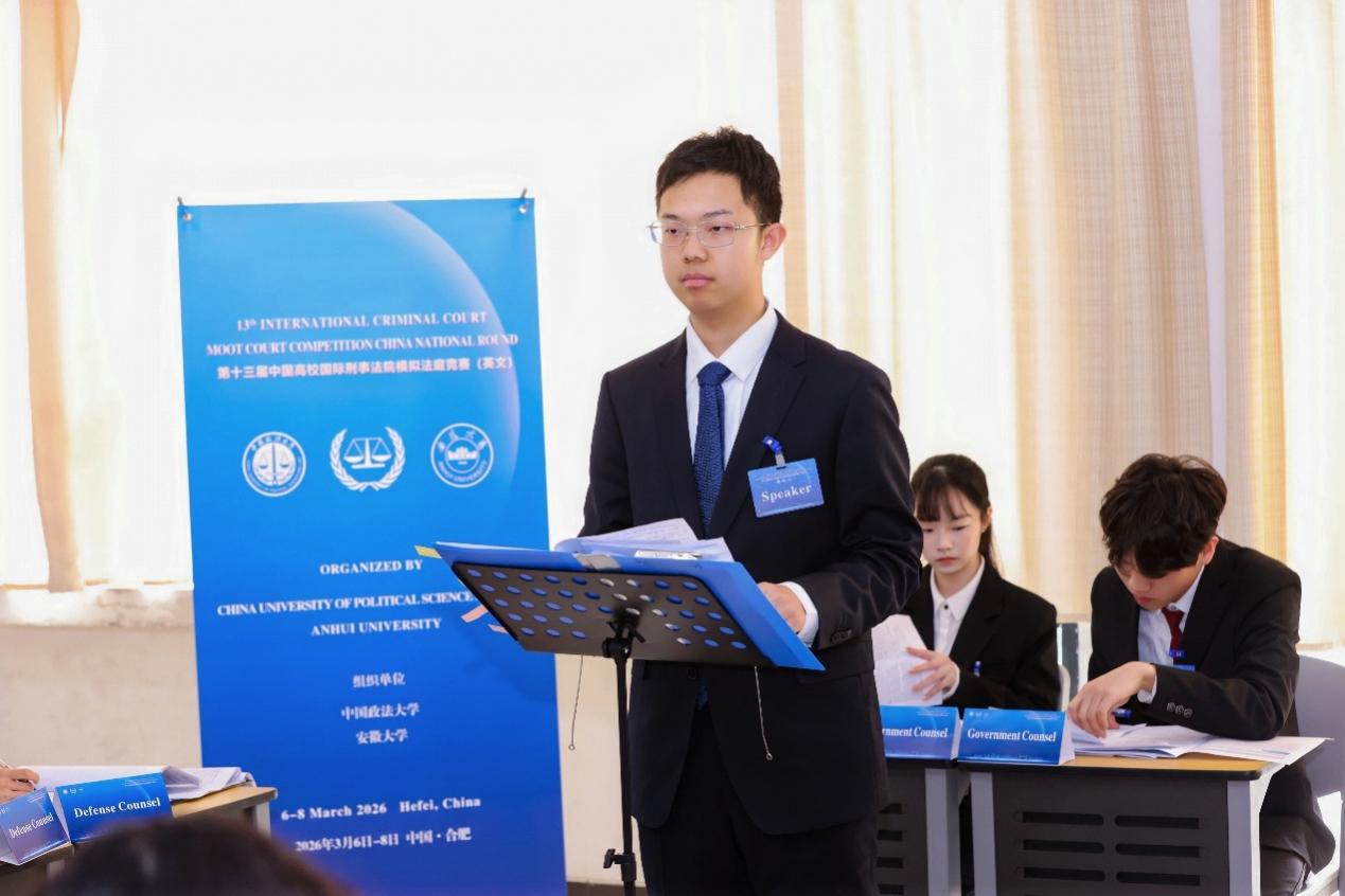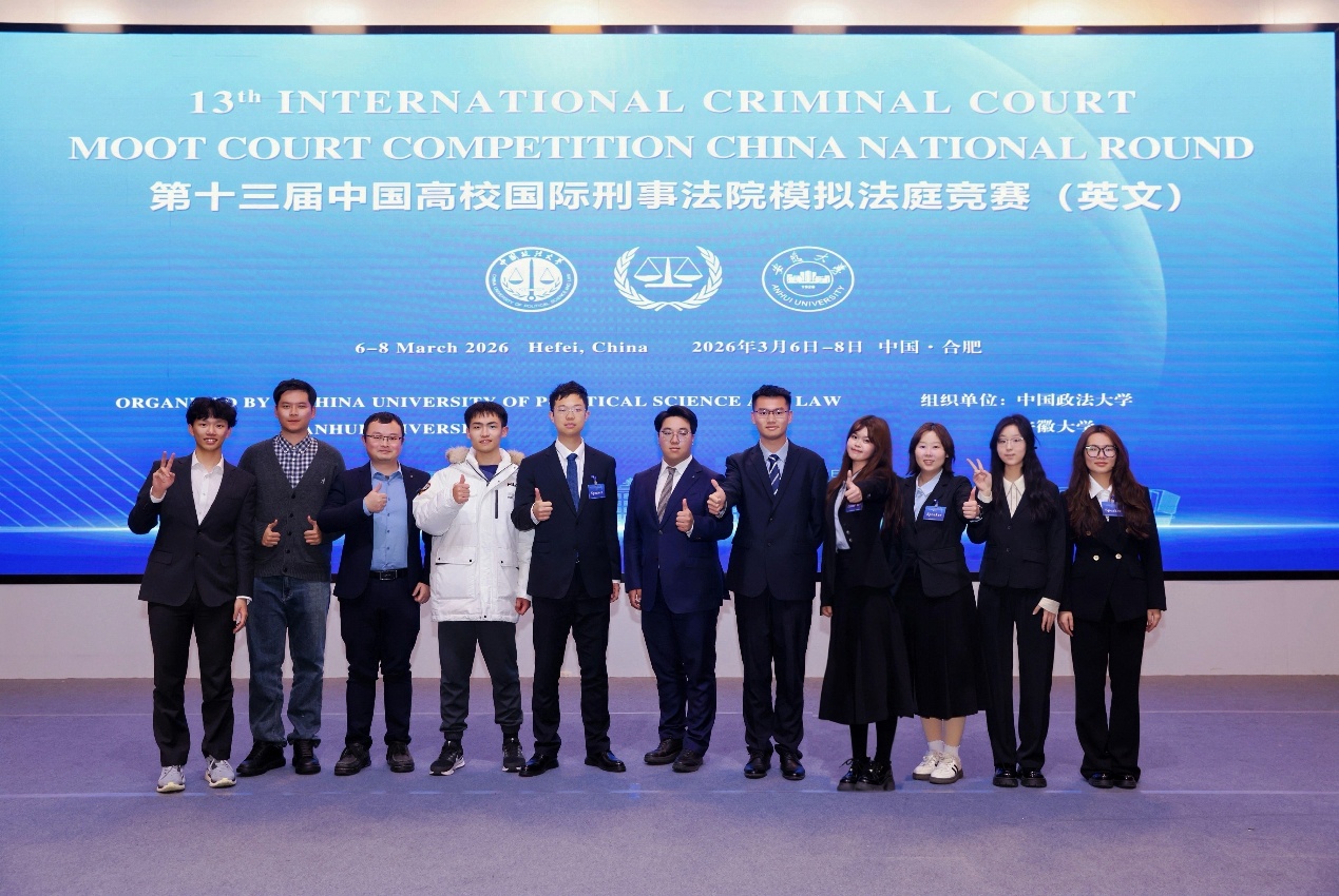 2026年3月6日至8日,由中国政法大学和安徽大学共同主办的“隆安杯”第十三届中国高校国际刑事法院模拟法庭竞赛(英文)在安徽合肥举行。作为国际法领域的顶级赛事之一,本届竞赛吸引了来自北京大学、武汉大学、复旦大学、中国政法大学等全国知名高校赛队参加,由30余位中外法学专家担任法官评委。经过严格的书状评审,得分前27名的赛队入围口头赛环节。经过激烈的庭辩角逐,我校代表队凭借出色的法律素养与庭辩表现最终荣获全国一等奖(总分排名第四)并晋级荷兰海牙国际赛,创下我校代表队参加此赛事以来的历史最好成绩。