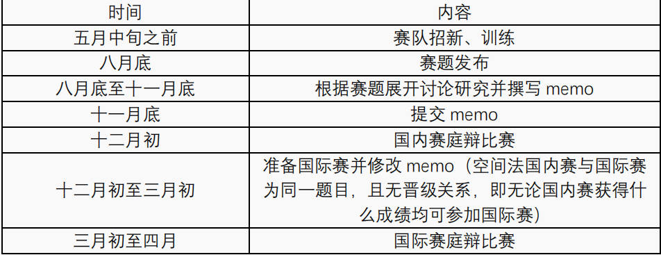 ⑤请注意:鉴于本届Jessup&空间法两项赛事将进行联合选拔,投递材料至邮箱即视为成功报名Jessup&空间法两项赛事的选拔,两项赛事后续将采用同一考核内容,最后将综合个人表现及意愿进入其中一个赛队。