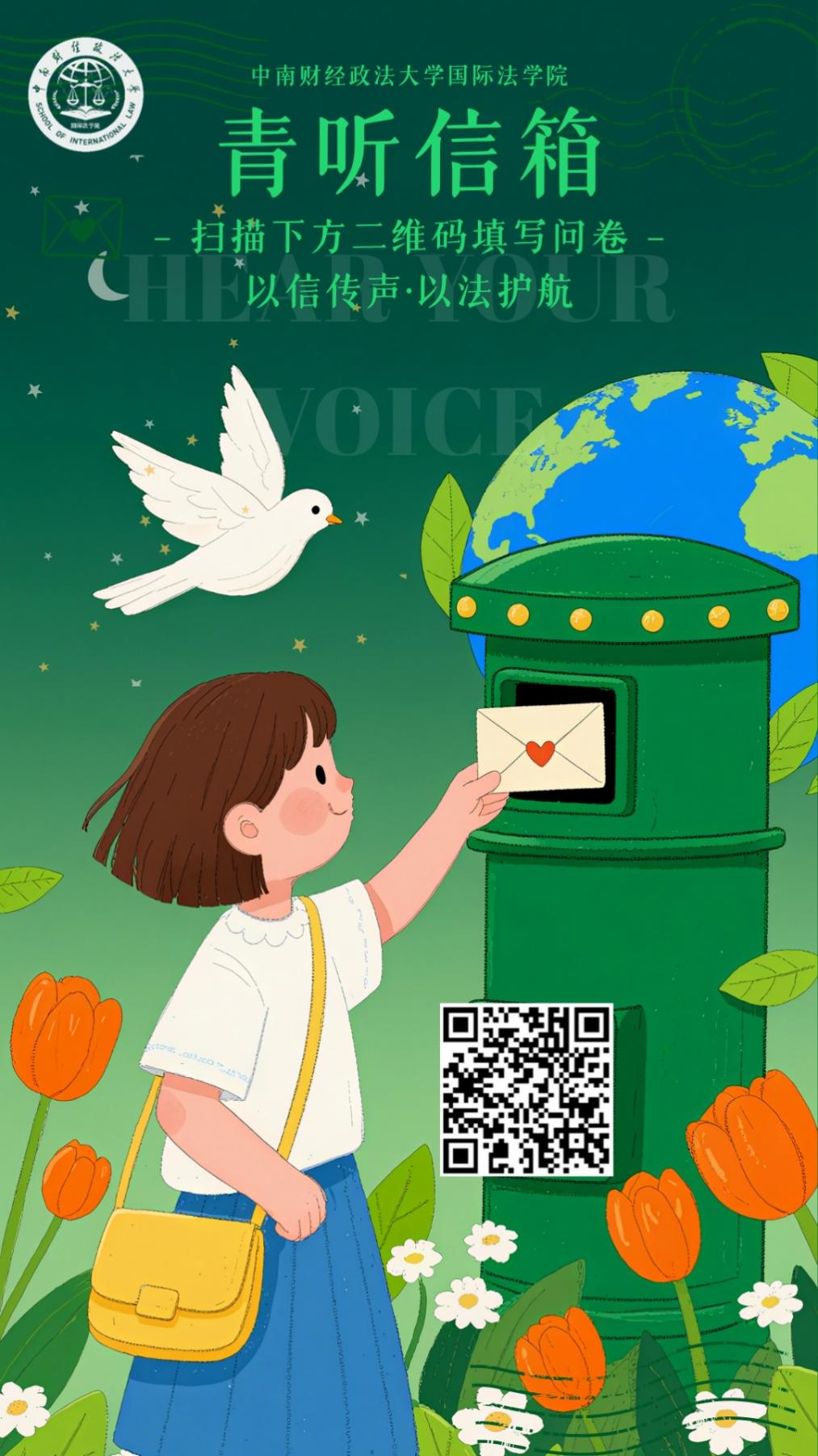 (国际法学院“青听信箱”线上反映渠道二维码)